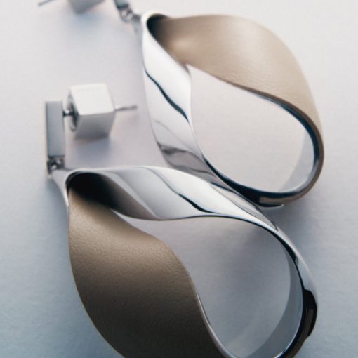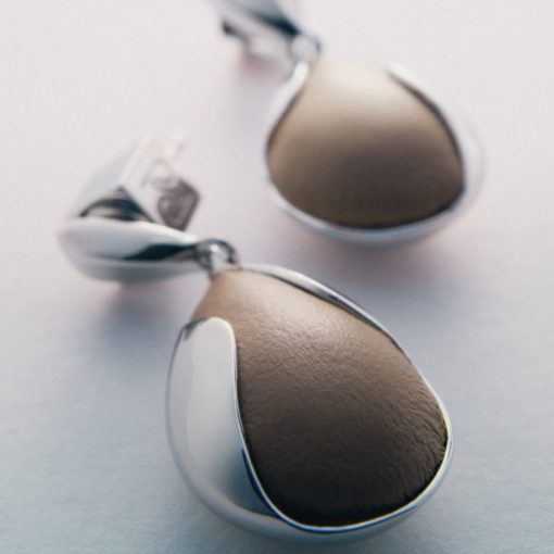 Boucles d’oreilles pendantes Ormé – Argentée Cuir Taupe