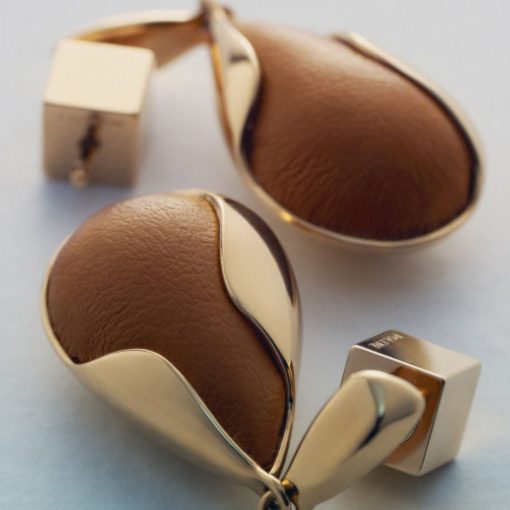 Boucles d’oreilles Ormé – Dorée Cuir Camel