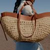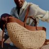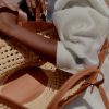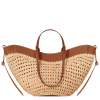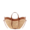 Cabas sculptural, le Cyme s’habille de raphia, fibre végétale à la souplesse naturelle. Ses motifs ondulés sont le résultat d’une combinaison inédite de points crochetées à la main par des artisans à Madagascar. Les lignes ajourées en raphia rejoignent le cuir grâce à un travail de broderie à l’aiguille. Cette édition incarne la rencontre entre l’artisanat du raphia et le savoir-faire de la maroquinerie.