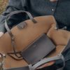 Celle d’un sac plus floral et fermé avec ses côtés rentrés, lanières croisées à l’intérieur.