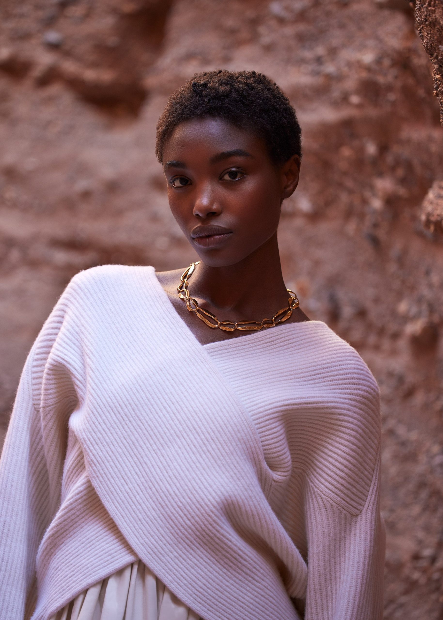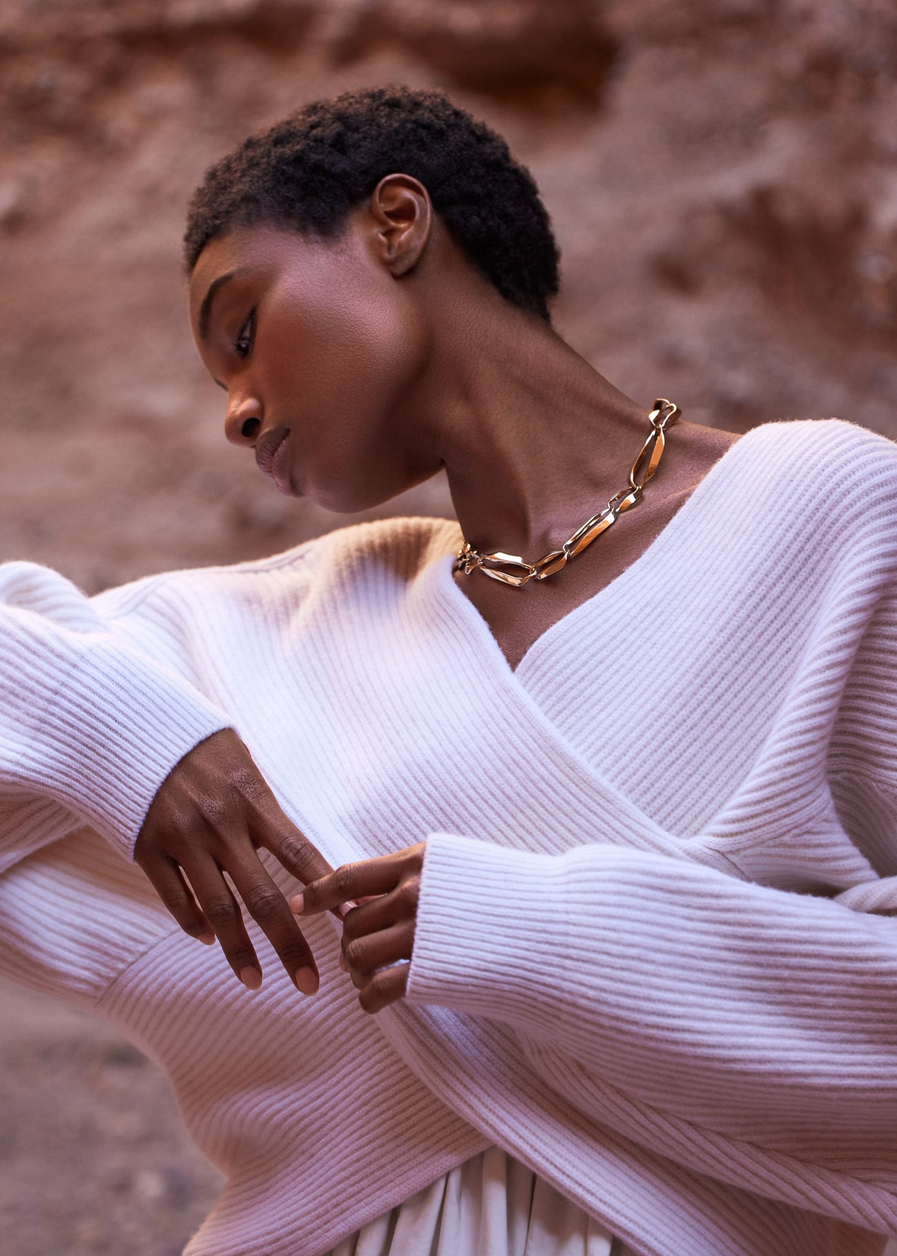 La chaîne Éole réinterprète un classique en entremêlant deux tailles de maillon à la forme organique pour un design à l’équilibre entre minimalisme et sens du détail.