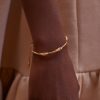 La subtilité et l’élégance d’un jonc qui cercle délicatement le poignet. Son design arbore des aspects de roches naissantes qui parsèment la ligne fluide du bracelet.