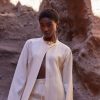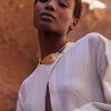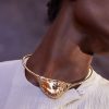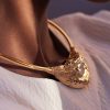 Pièce au design affirmé qui joue le contraste entre une ligne fine qui orne le cou et une pièce centrale sculpturale, comme un morceau de roche brute posé à même la peau.