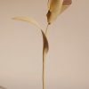 Issue de la collection Plèi 100% en chutes de cuir upcyclées, la fleur « Pili » réinterprète l’élégance épurée de l’Arum. Son pétale se dédouble grâce à un savant pliage maintenu par de discrets points de couture à la main et laisse apparaître l’association de cuirs. Une longue feuille nervurée s’enroule soigneusement autour de la tige gainée de cuir.