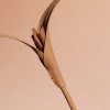 Issue de la collection Plèi 100% en chutes de cuir upcyclées, la fleur « Touka » est travaillée dans un camaïeu tricolore. Sa linéarité graphique est inspirée par l’oiseau de paradis. Deux fleurs asymétriques ont des pétales internes enroulés. La jonction de leurs tiges gainées de cuir est subtilement cachée par des feuilles nervurées reliées par des points de couture à la main.