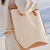 Le cabas « Ilo » allie fonctionnalité et détails maroquiniers. Sa toile de coton tenue en suspension par un jeu de passants arbore des lignes douces soulignées par de fines bandes de cuir. Sa silhouette verticale permet de transporter ordinateur et formats A4. Un débossage à haute fréquence signe en relief ton-sur-ton le logo Polène.