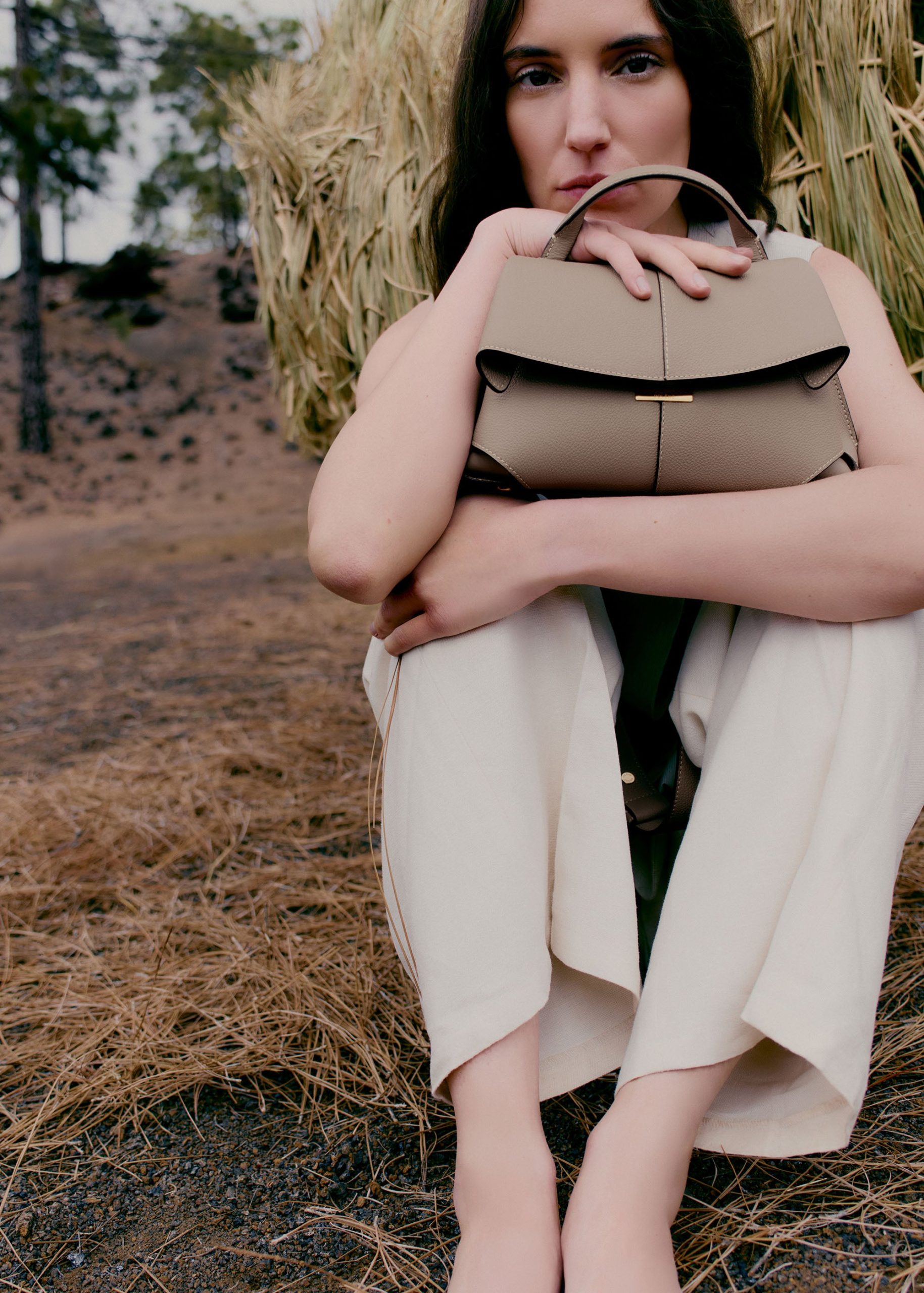 Au travers d’un assemblage ingénieux de trente-six pans de cuir, le modèle « Mokki Mini » valorise l’art du pliage avec son jeu subtil de cuirs grainé et lisse. Sous son rabat souligné d’un fermoir gravé, l’intérieur est compartimenté. Grâce à sa bandoulière adaptable maintenue par des mousquetons, le modèle suit avec fluidité le mouvement.