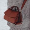 Le modèle « Mokki » valorise l’art du pliage avec son cuir grainé. Une découpe aux angles révèle le cuir lisse pour un subtil jeu de textures. Sous son rabat souligné d’un fermoir gravé, l’intérieur compartimenté est spacieux. Grâce à sa bandoulière adaptable maintenue par des mousquetons, le modèle suit avec fluidité le mouvement.
