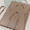 Soulignée par des coutures minutieuses, la pochette « Nodde » est composée de modules de cuir qui s’entrecroisent. Son nom est inspiré du mot « nœud » en français.
