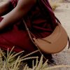 Avec sa forme bombée, son garnissage avec mousse et ses points cousus à la main, le « Numéro Dix » s’inspire des codes équestres de la sellerie. Son design demi-lune joue sur la juxtaposition de courbes.