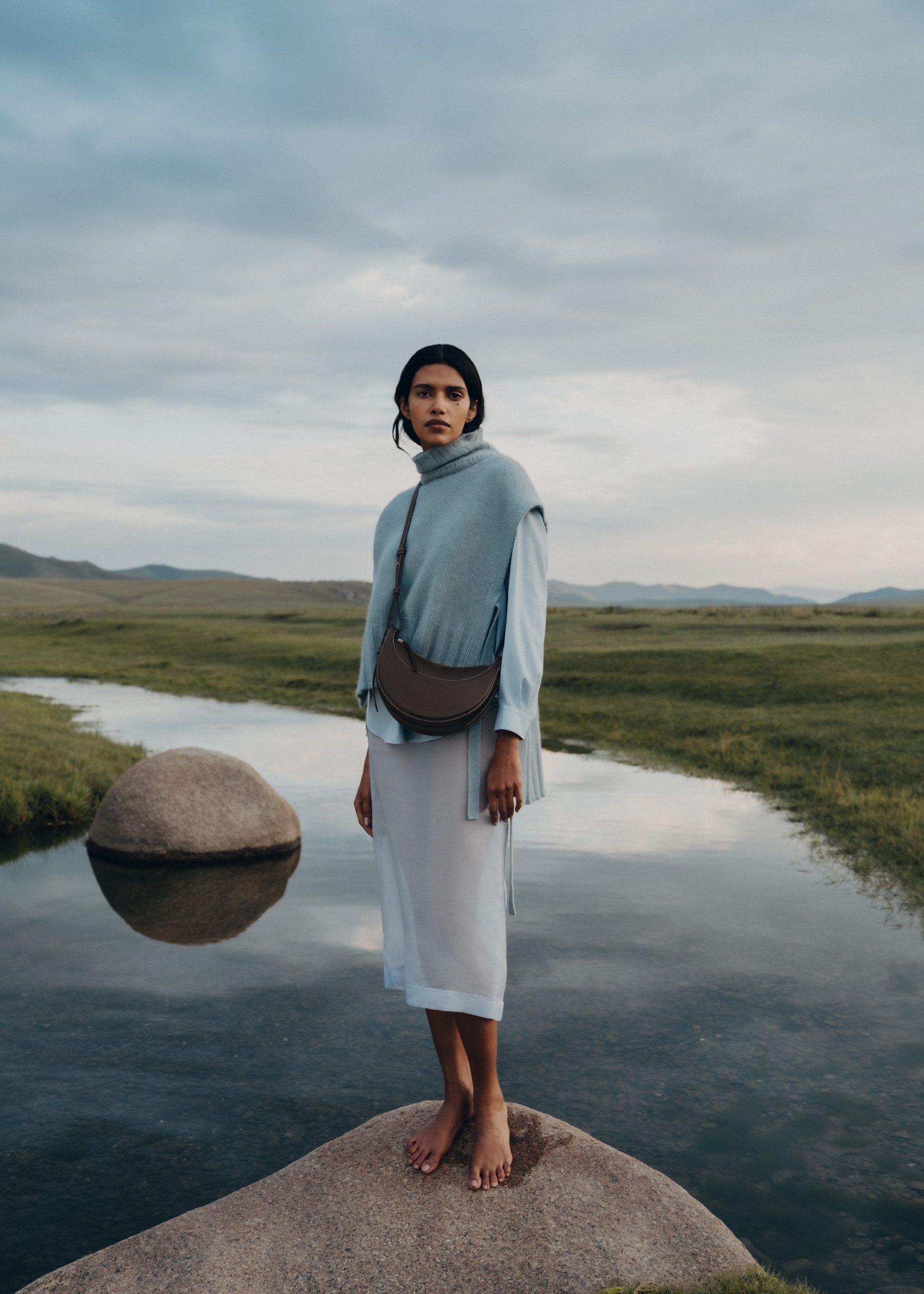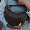 Avec sa forme bombée, son garnissage avec mousse et ses points cousus à la main, le « Numéro Dix » s’inspire des codes équestres de la sellerie. Son design demi-lune joue sur la juxtaposition de courbes.