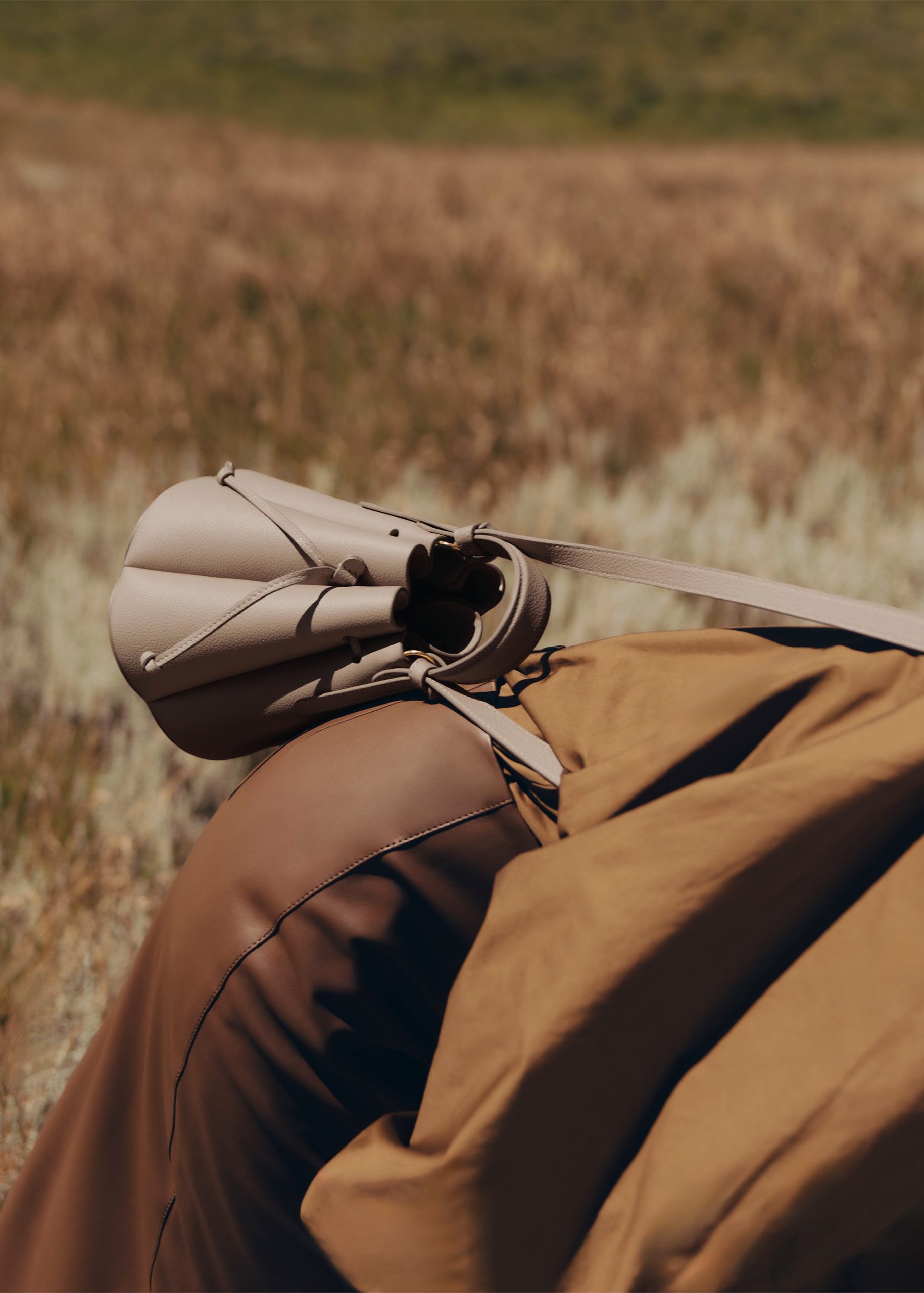 Le « Numéro Huit Mini » est un sac seau compact d’aspect floral, ses lignes sculpturales sont obtenues par un travail d’ondulation du cuir créant un effet de plissé.
