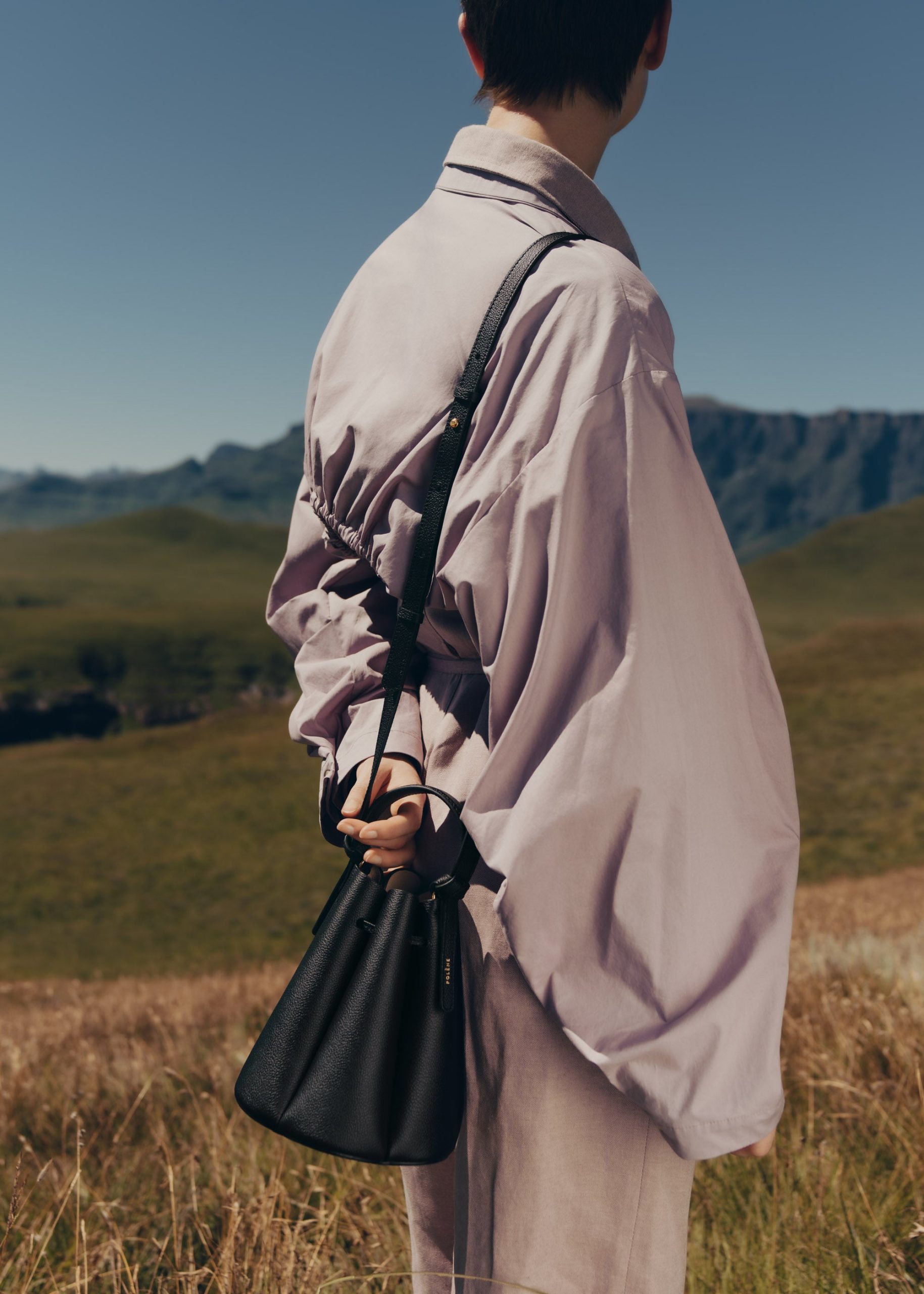 Le « Numéro Huit Mini » est un sac seau compact d’aspect floral, ses lignes sculpturales sont obtenues par un travail d’ondulation du cuir créant un effet de plissé.