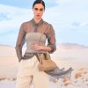 Pièce au design organique, le « Numéro Neuf Mini » est à l’équilibre entre souplesse et maintien. Le cuir, travaillé en drapé, est retenu par des points cousus à la main.