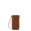Pour donner corps à l’étui téléphone Onda, des bandes piquées s’alternent en quinconce, dessinant un relief faisant écho à une écorce de cuir ondulé. L’accessoire porté autour du cou ou en crossbody permet aussi d’y glisser des cartes.