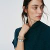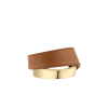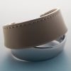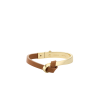 La manchette Ormé se compose de deux éléments incurvés, l’un en métal et l’autre en cuir. Les points de couture réalisés à la main et le rivet assemblant les deux pièces rappellent l’artisanat maroquinier.