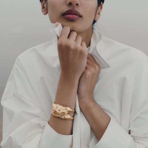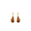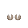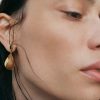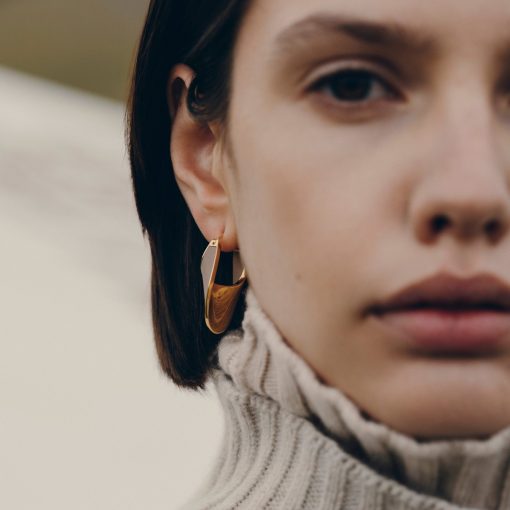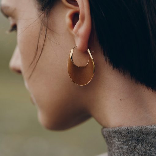 Les boucles d’oreilles Ormé évoquent une goutte de cuir, délicatement étreinte par le métal.
