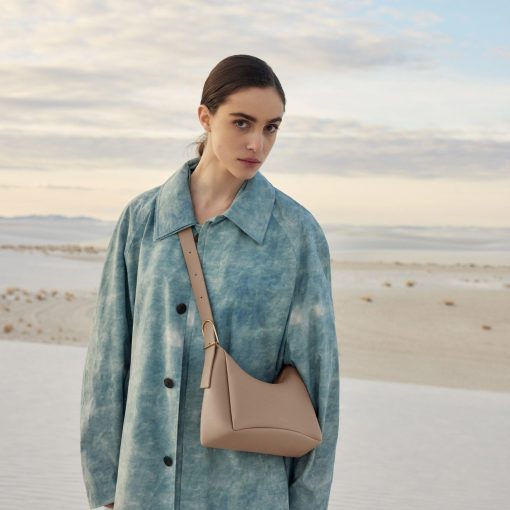Les boucles d’oreilles pendantes Ormé s’inspirent de la forme d’une feuille torsadée, mêlant harmonieusement le cuir et le métal.
