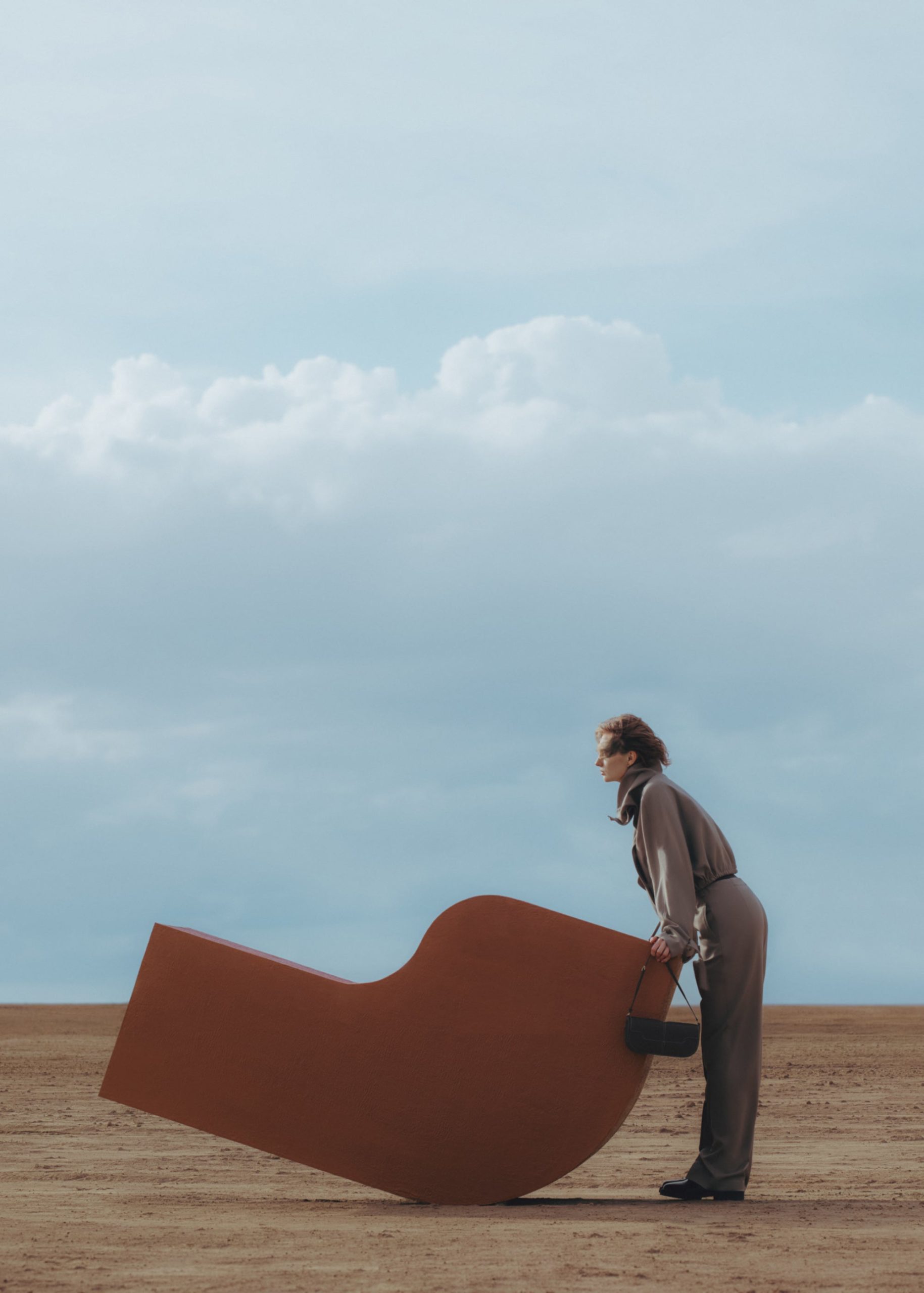Le design du modèle Osmo repose sur une construction de modules en cuir qui se répètent, se répondent et s’imbriquent pour créer un ensemble symétrique.