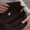 Fermé par un rabat, cet écrin est coupé dans un cuir de veau lisse, nappa. Réputé pour sa beauté naturelle et son toucher singulier, il revêt l’intérieur et l’extérieur du sac. La bandoulière réglable permet un porté court, « baguette ».
